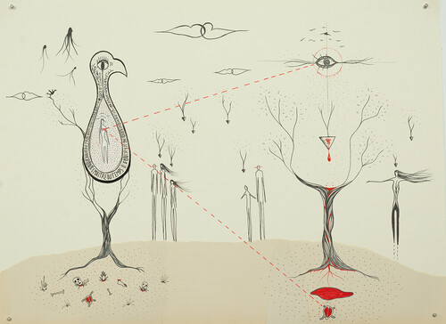 Podemos encontrar figuras del inconsciente, procesos de sublimación y condensación de la materia, la presencia del tiempo no lineal, el ruido, las expectativas y el fracaso. Pero siempre todo en su expresión cíclica e interconectada, en donde las raíces nos dan alas o la muerte es el compost sobre el que se fundamenta la vida que vuelve a gestarse en cada oportunidad. Los estados alterados de la conciencia a veces descubren el velo que nos impide ver estas conexiones.