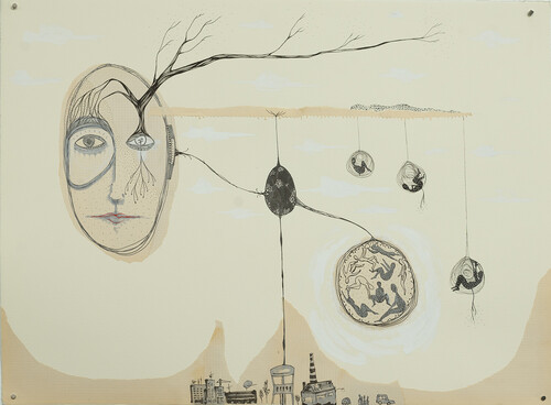 Atendiendo a esta separación, los dibujos e ilustraciones de Selu Herráiz redefinen el arte como una “ventana” que ya no excluye, sino que integra las diferentes partes del universo compartimentadas por el efecto civilizador. La “casa-arte” se convierte, de este modo, en el lugar desde el que ofrecer una visión holística de la vida, en la que lo celular y la tecnología se encuentran conectadas por un idéntico y sincronizado pálpito. En un momento en que el planeta se enfrenta a dramáticos desafíos medioambientales, y en el que nuestra forma de vida conocida se encuentra en riesgo de desaparecer, las “cartografías simbólicas” de Selu Herráiz procuran una alternativa ética desde la que reconectarnos a la naturaleza. Recuerda Agamben, en este sentido, que las potencias históricas tradicionales -poesía, religión, filosofía- han sido transformadas en espectáculos culturales y en experiencias privadas, de suerte que han perdido toda eficacia histórica. Frente a este eclipse -asevera-, “la única tarea que todavía parece conservar alguna seriedad es el tomar a cargo y realizar la ‘gestión integral’ de la vida biológica”. Este cuidado de lo biológico es precisamente la propuesta discursiva que Selu Herraíz desarrolla en Ídolos y procariotas. Los constructos culturales y la vida biológica más elemental son reintegrados dentro de un mismo mapa de significación, en el que todos aquellos elementos que la subjetividad humana había convertido en antagónicos son reconectados simbólicamente.
